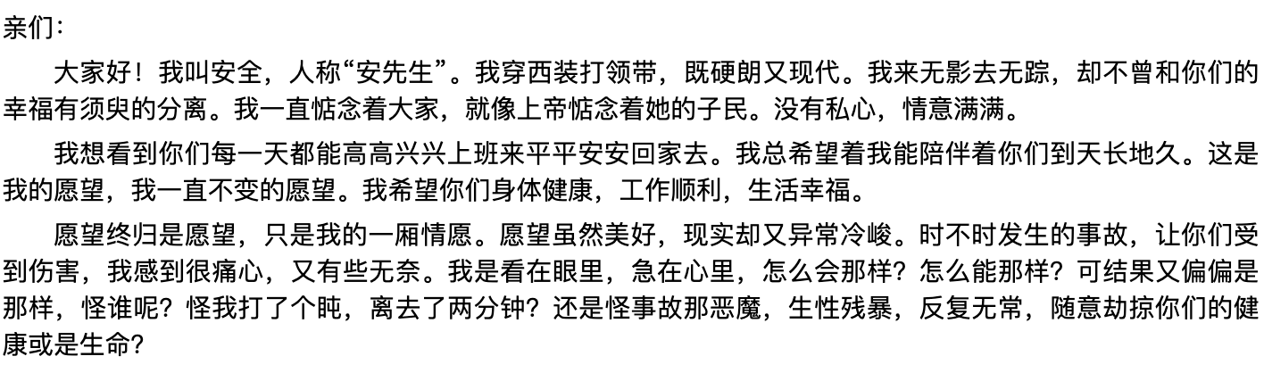 安先生的一封信