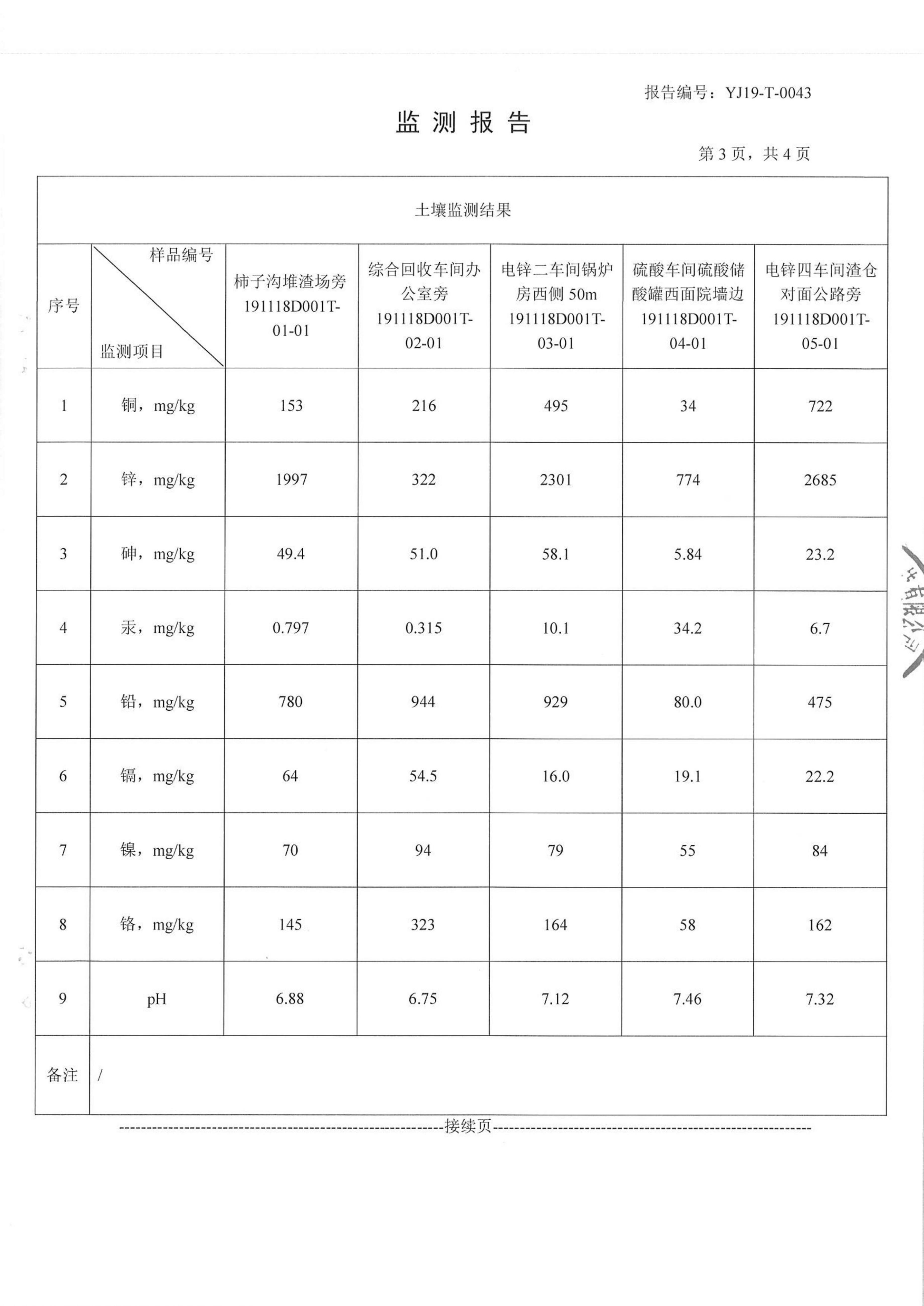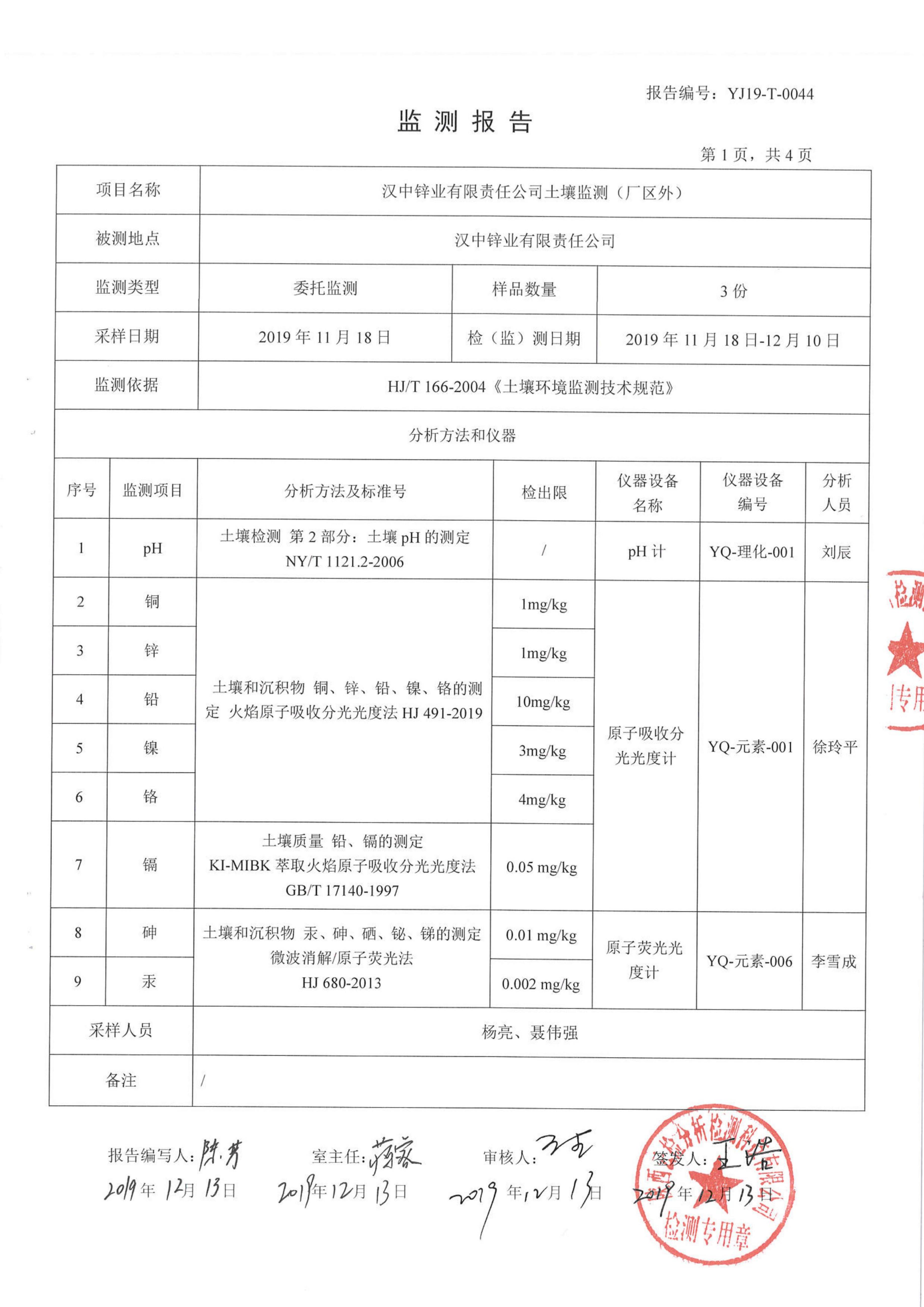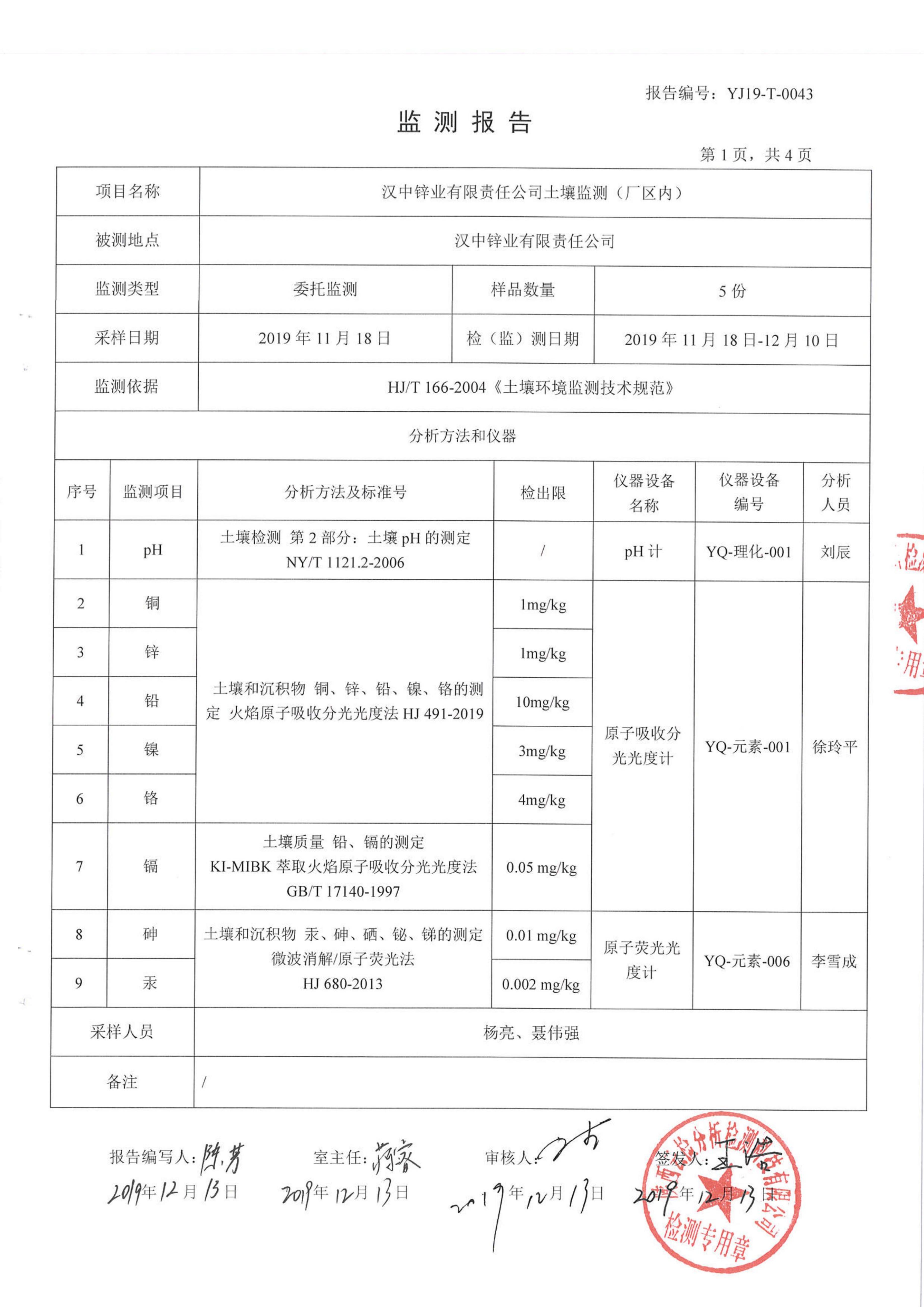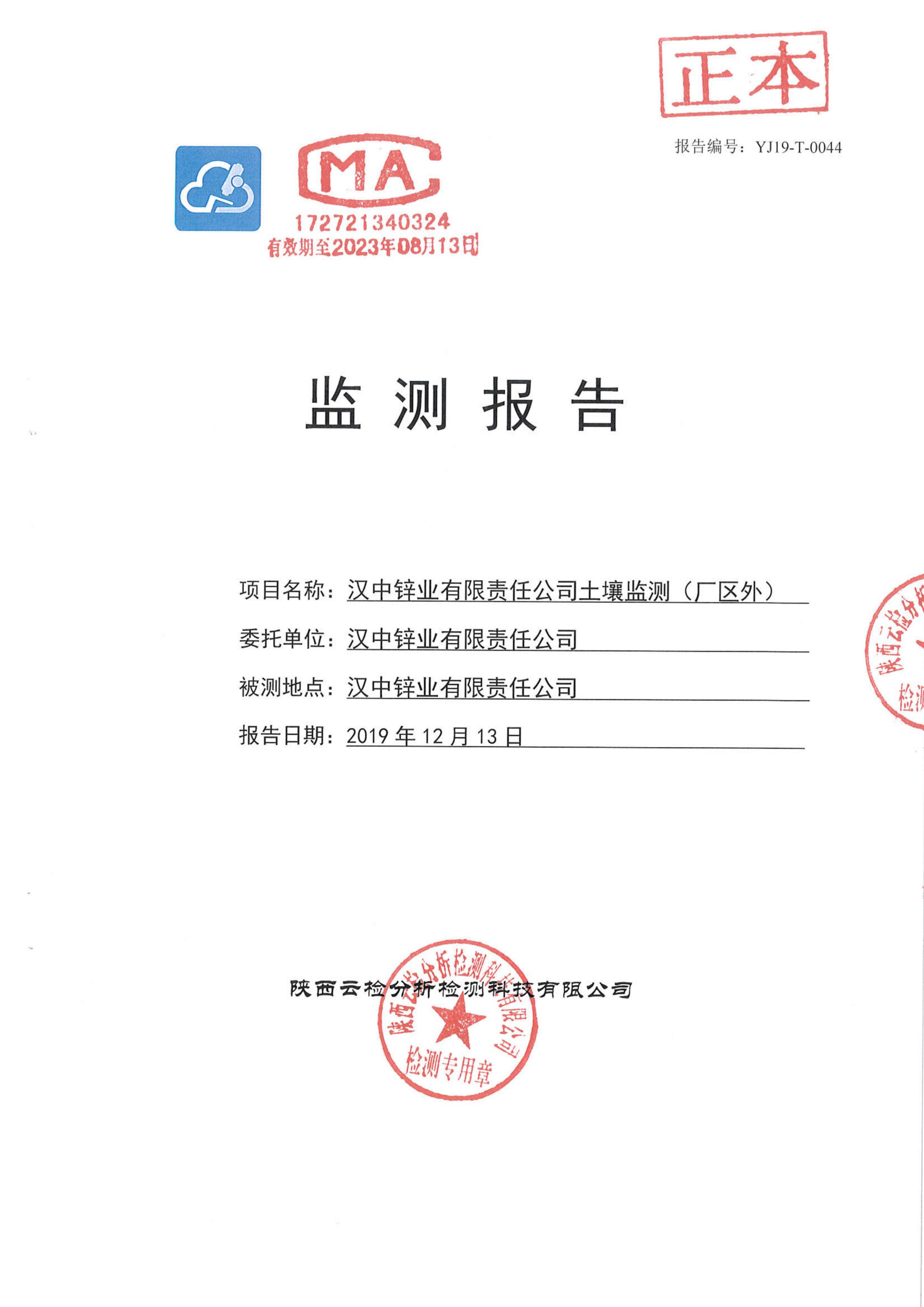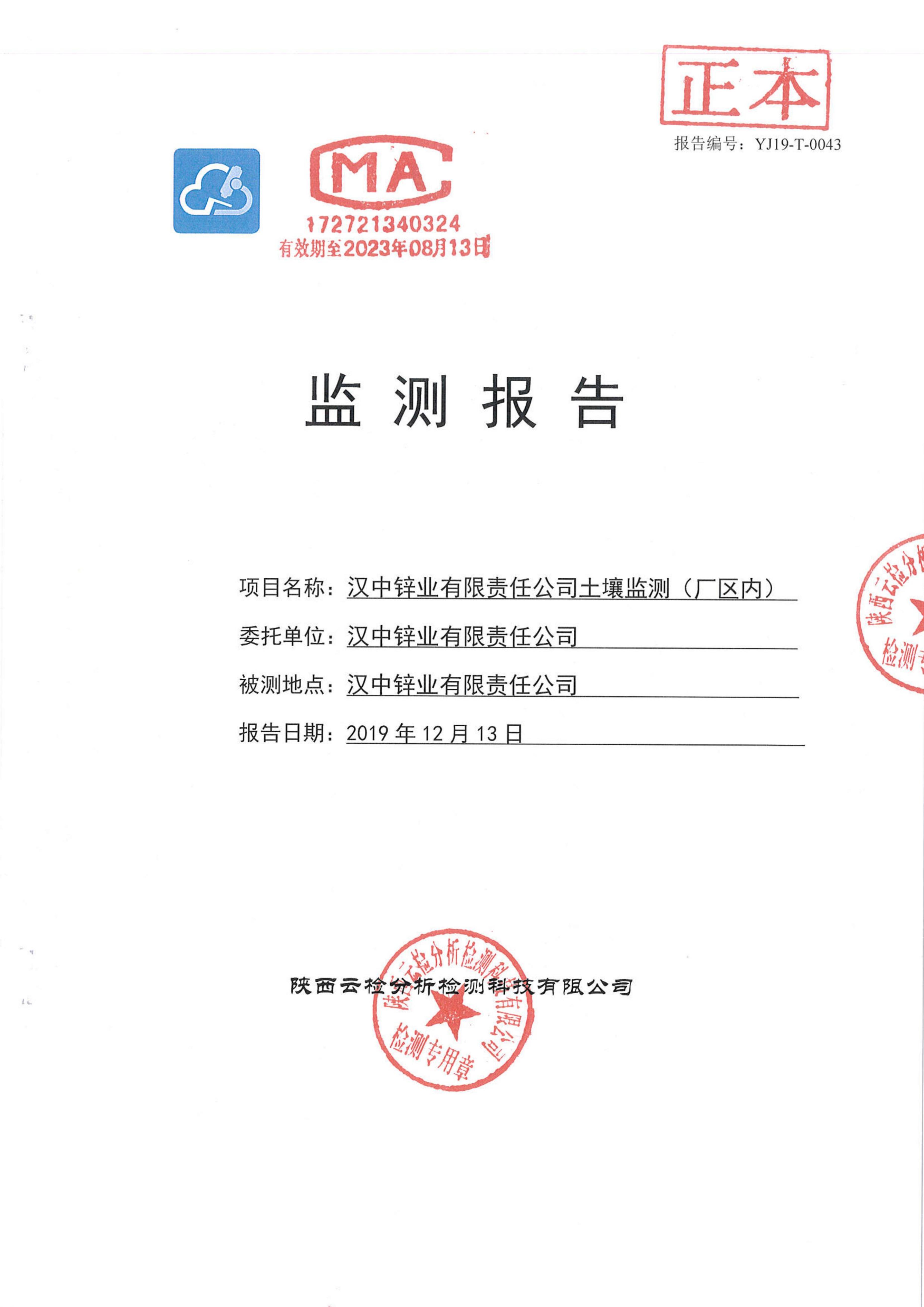漢中鋅業(yè)有限責(zé)任公司2019年度土壤自行監(jiān)測(cè)公示