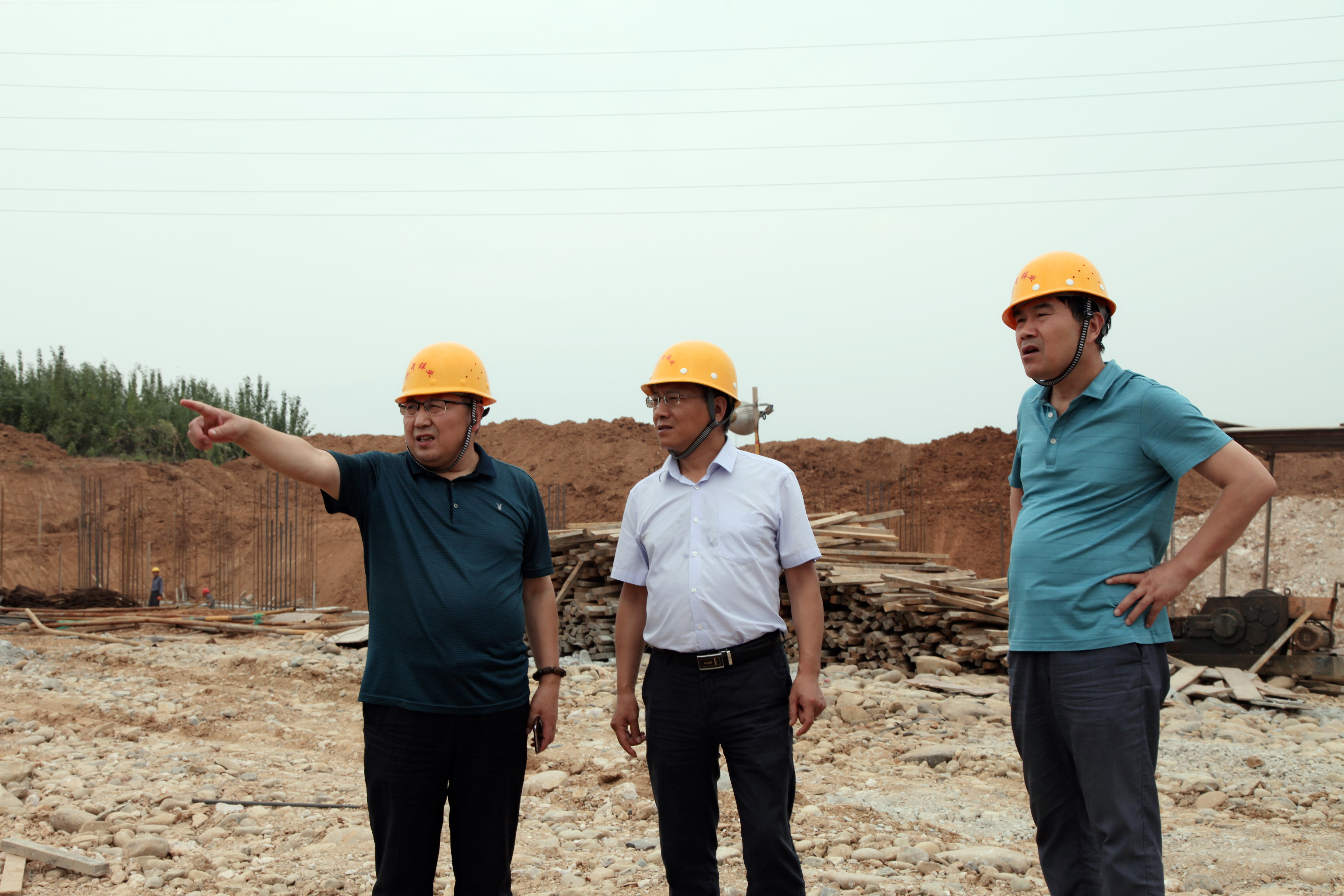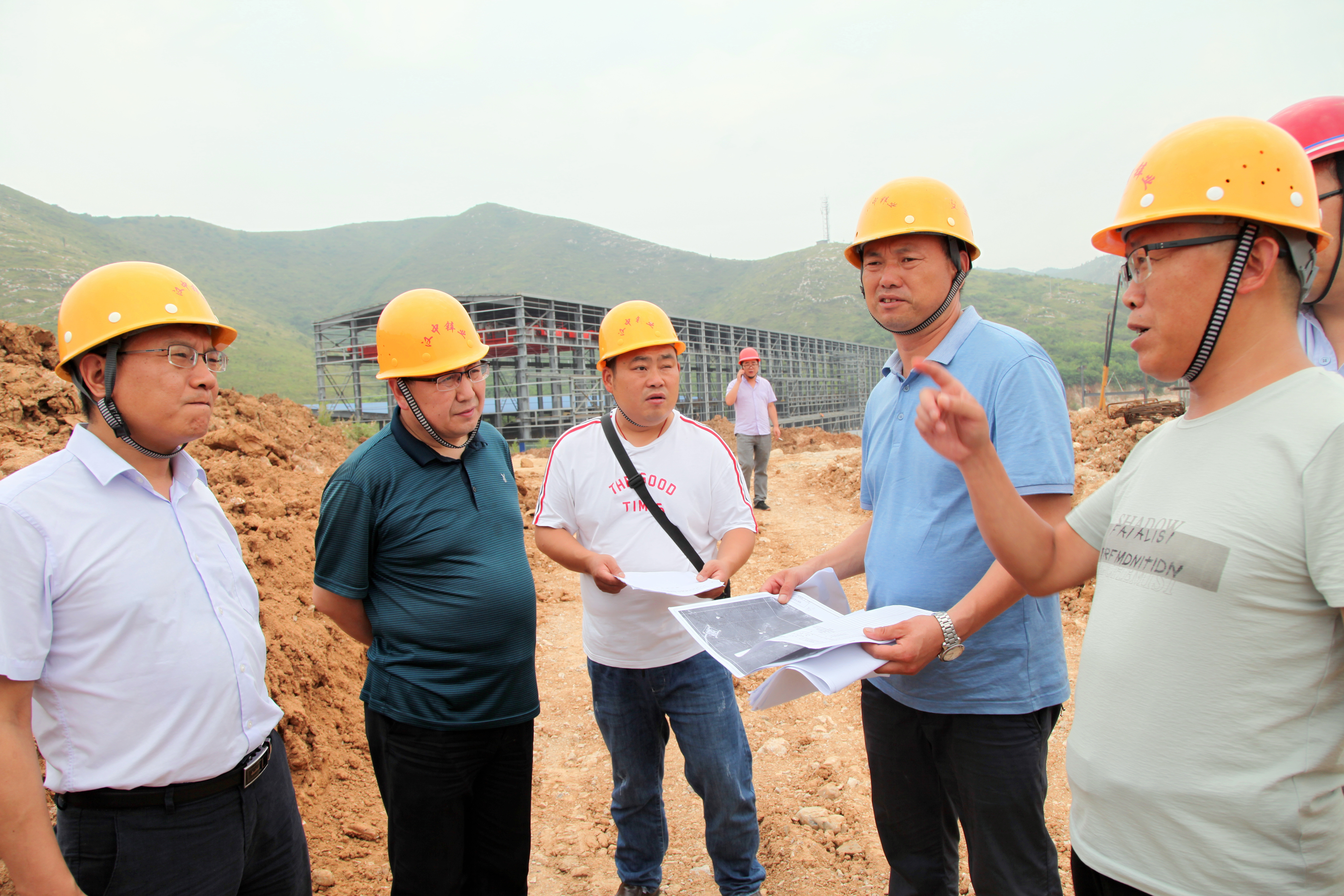 烈日當頭,在公司總經理王正民、副總經理王瑜,副總工程師張焰,機動能源部負責人蔣春華等陪同下,劉俊華一行參觀了公司渣處理項目現場。然后順著山路爬上高坡,實地察看渣處理項目供電架空高壓線路走向、鐵塔位置以及35kv變電站施工進展情況。