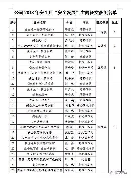 公司安全月“安全發(fā)展”主題征文評獎結(jié)果揭曉