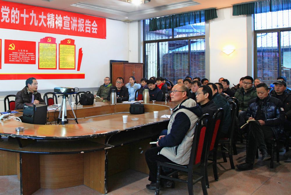 近日,公司黨委在組織黨員干部集中聽取集團(tuán)公司宣講團(tuán)成員十九大精神宣講的基礎(chǔ)上,組建了由公司黨委委員楊新宏?duì)款^負(fù)責(zé)、9名理論宣傳骨干為成員的公司宣講團(tuán),從2017年12月中旬至12月底,分片區(qū)開展了宣講活動(dòng)。
