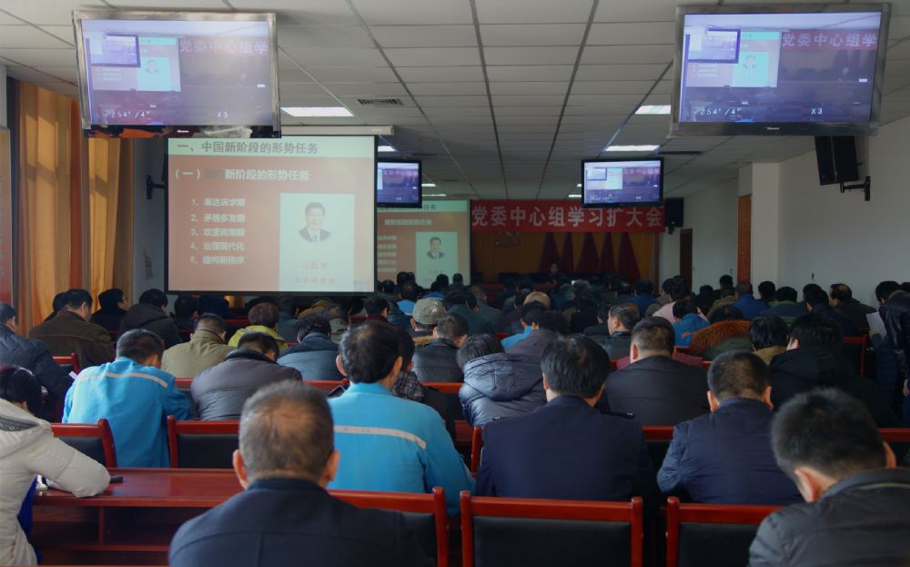12月27日,公司召開黨委中心組學習擴大會,專題學習黨的十八屆六中全會精神。漢中市委黨校副教授、市宣講團成員張友泰以“全面從嚴治黨新篇章”為主題,對全會精神進行了解讀。公司董事長、黨委副書記劉朝斌等公司領導,公司總部副科級以上黨員干部及特材公司、銅礦公司黨務干部100余人參加學習。學習會由公司黨委委員、組織部長楊新宏主持。