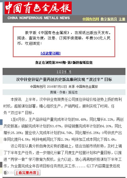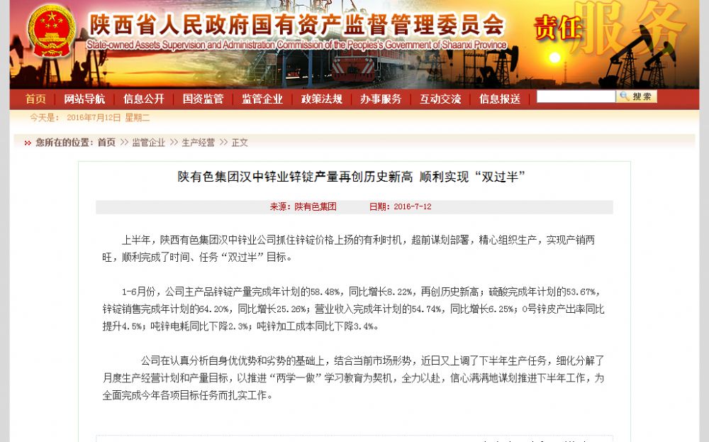 陜西國資委網(wǎng)站、中國有色報:漢中鋅業(yè)鋅錠產(chǎn)量再創(chuàng)歷史新高 順利實現(xiàn)“雙過半”目標