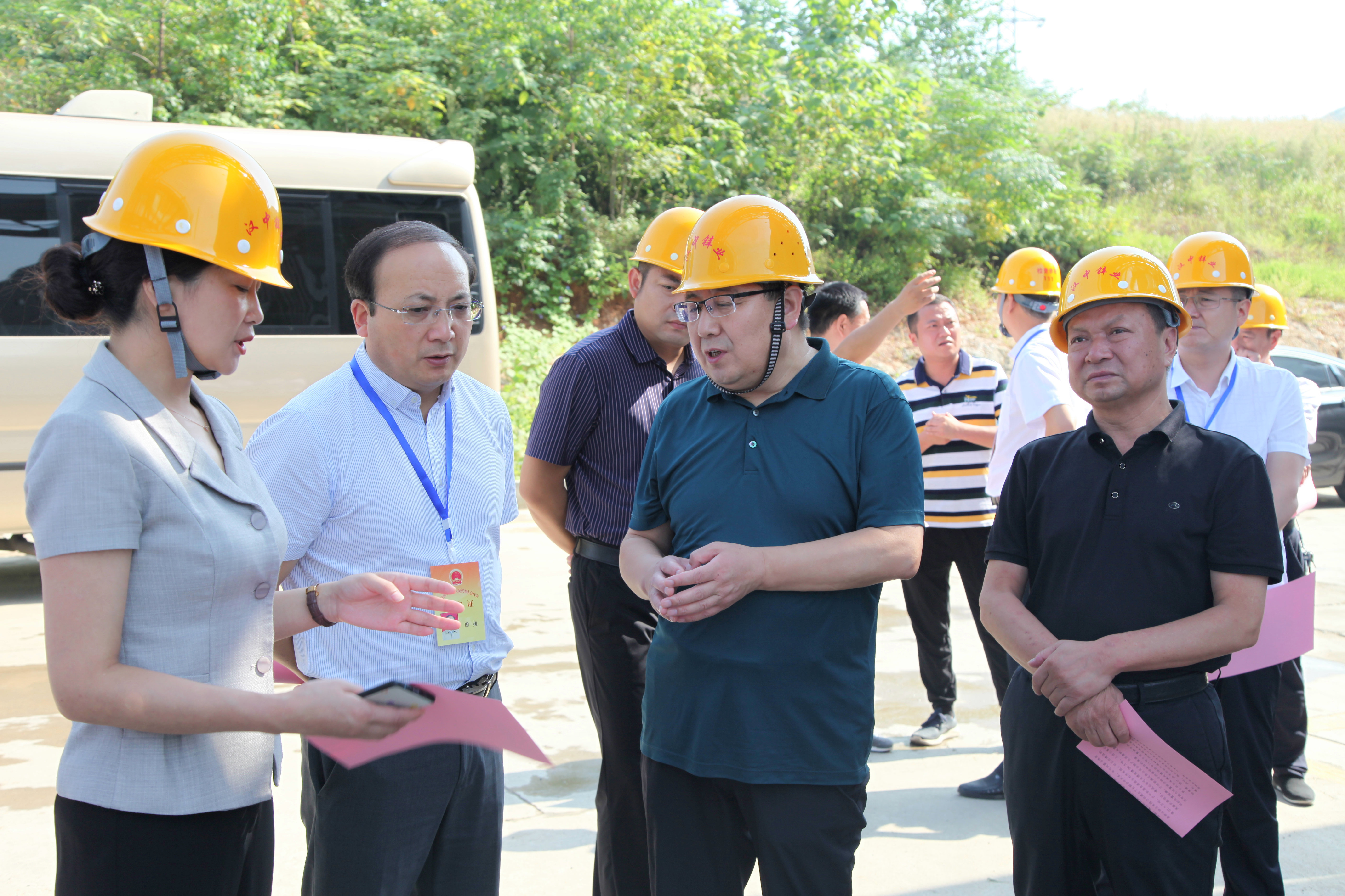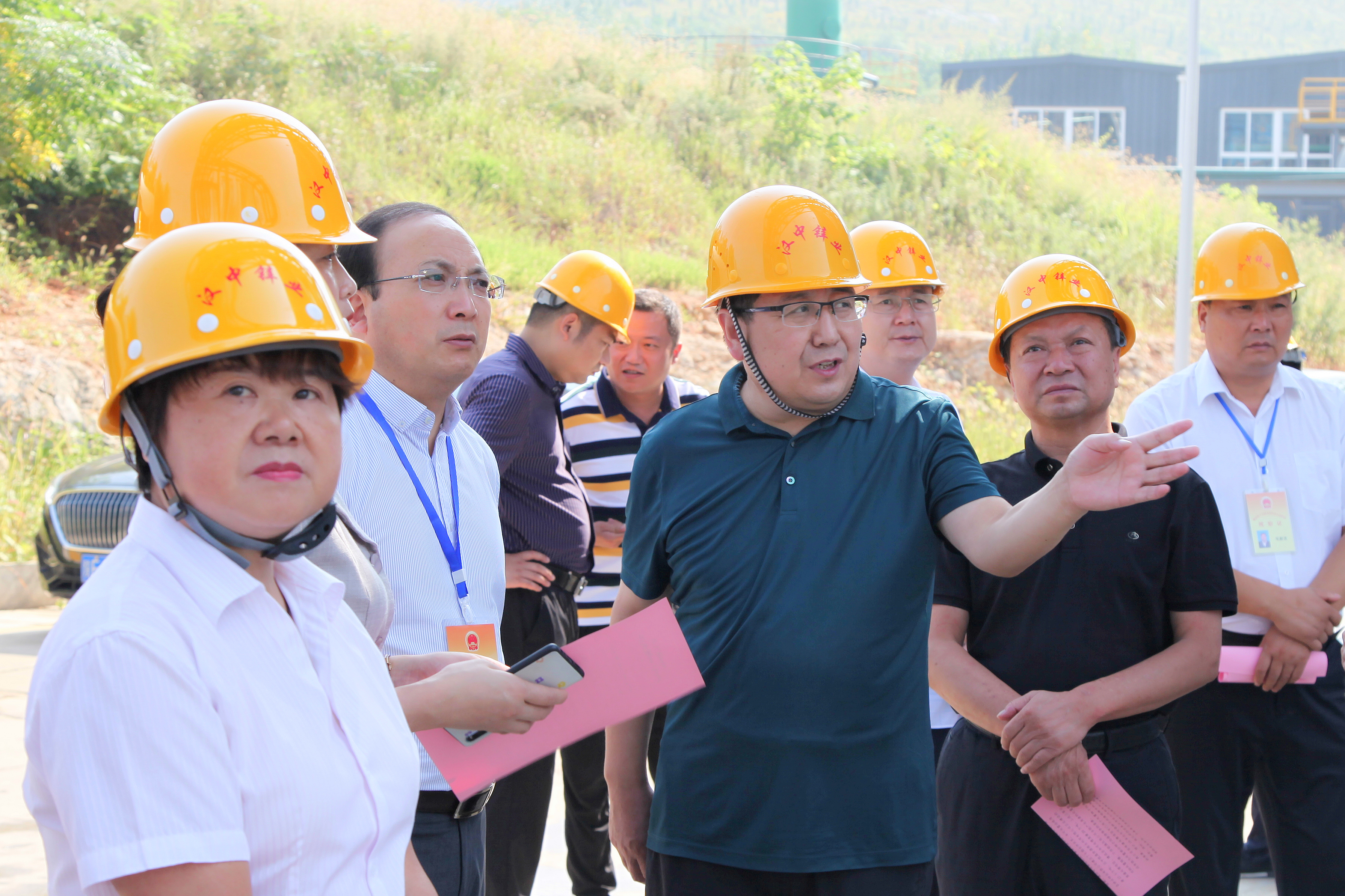 青山環繞,草木蔥蘢。視察組來到山腳下的公司渣綜合利用無害化處理車間,詳細了解浸出渣管理情況、渣處理生產工藝、環保技術以及試生產準備情況,王瑜作了匯報。