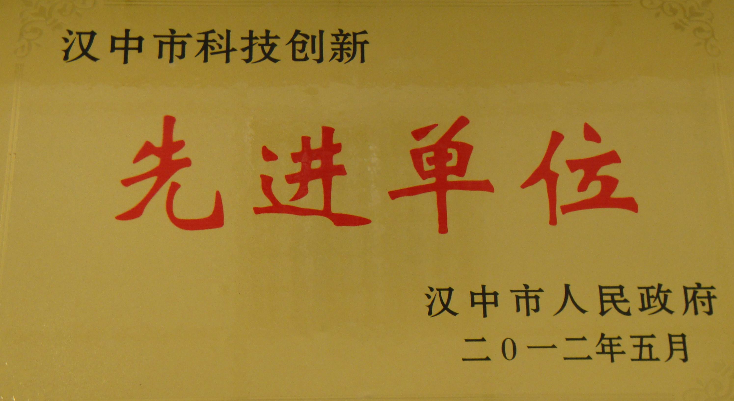 2012年漢中市科技創(chuàng)新先進單位 -