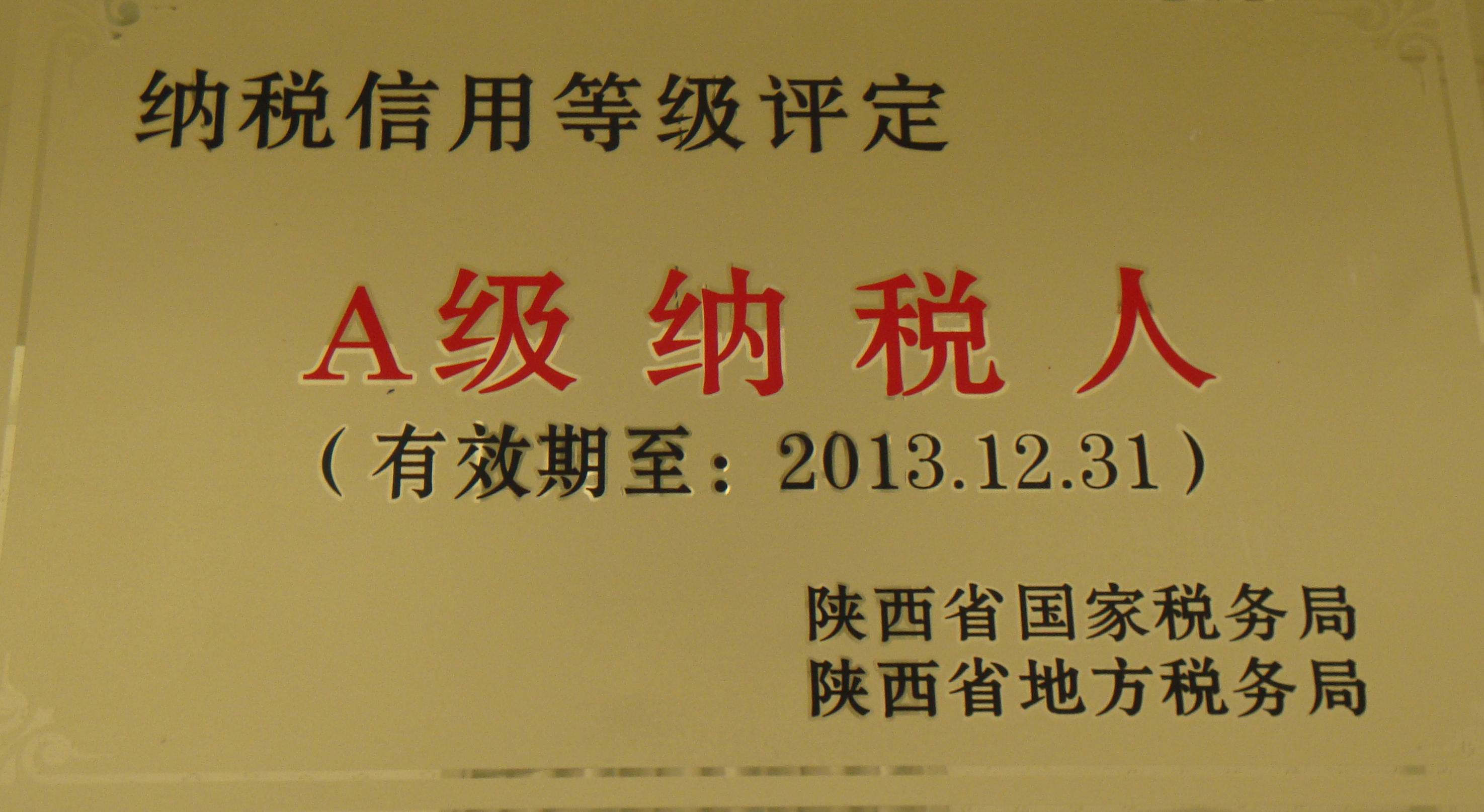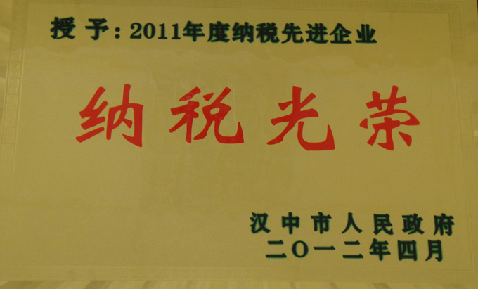 2012年榮獲漢中市“納稅先進企業(yè)”稱號 -