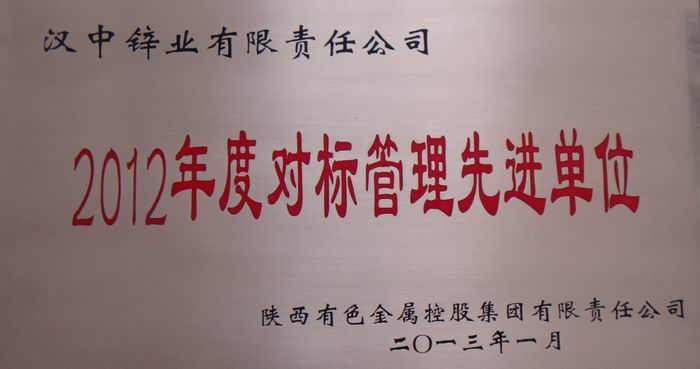 2013年1月,公司被陜西有色金屬控股集團有限責(zé)任公司授予2012年度“對標管理先進單位”榮譽稱號 -