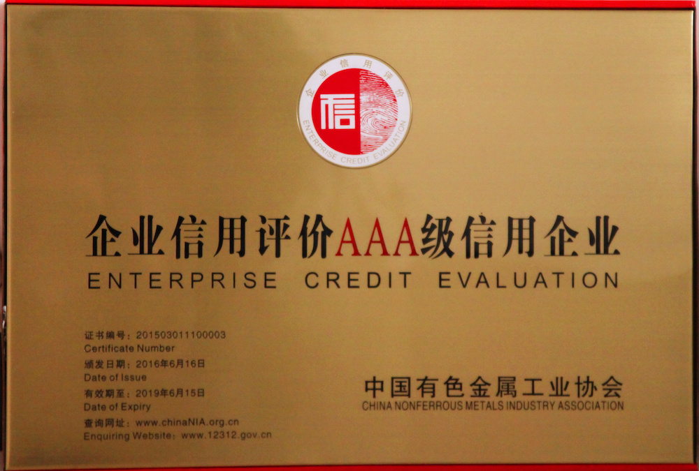 2016年企業(yè)信用評價AAA級信用企業(yè)—中國有色金屬工業(yè)協(xié)會 -