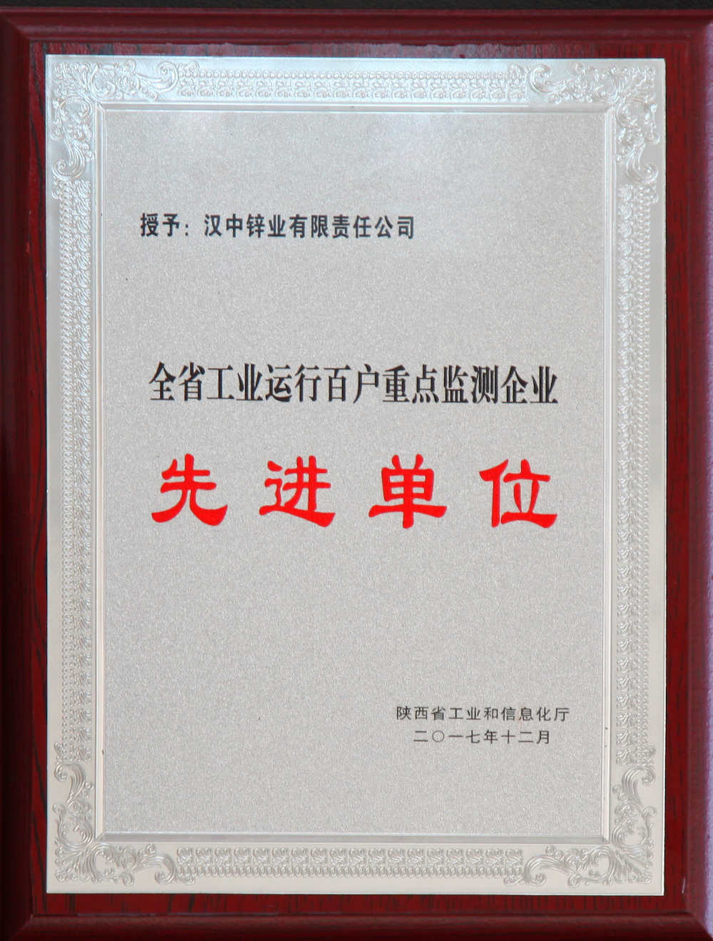 2007年陜西漢中八一鋅業(yè)有限責(zé)任公司創(chuàng)建“四好”領(lǐng)導(dǎo)班子先進集體 -