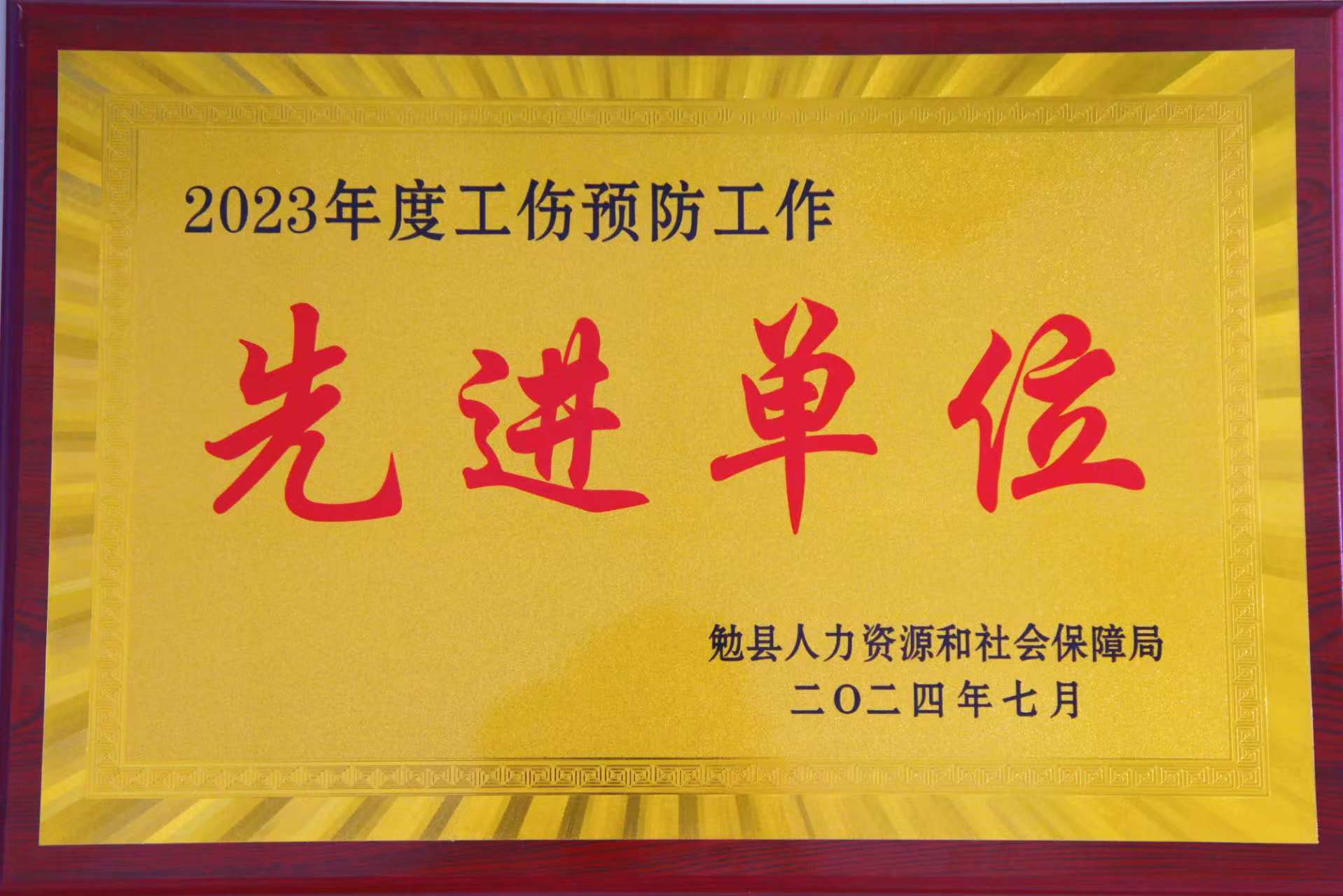 公司榮獲2023年度工傷預(yù)防先進單位 -
